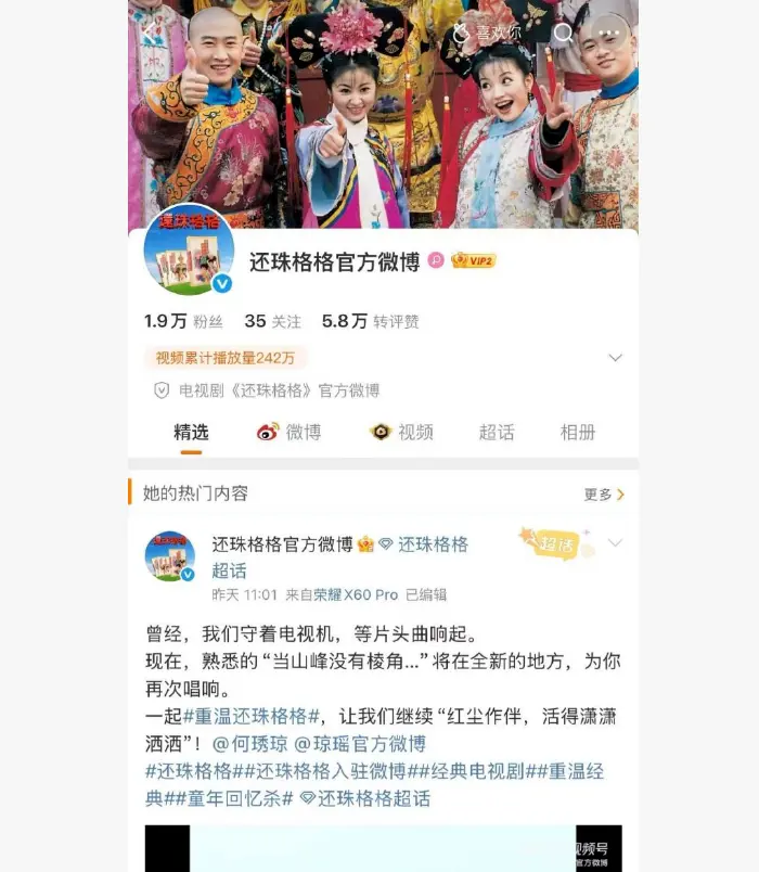 最近《还珠格格》偷偷注册了微博和抖音,大略官方念念象的是热气腾腾的爷青回,恶果场所终究是走反了……莫得走进扯后腿的皇宫,而是走进了天子亲封的冷宫。两个平台粉丝凑一齐才4万多,评述区连个像样的回忆杀齐没刷起来,冷清得跟紫薇她妈当年住的破院子似的。